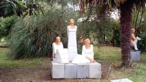 Le opere di Vittoria Cusatelli nel giardino della sua casa di Giove, in Umbria. A meno di un'ora da Roma oltre trenta figure a grandezza naturale in terracotta e in bronzo animeranno un paesaggio magico e surreale. Un popolo di donne, bambini, animali che si confonde tra gli ulivi e gli alberi da frutta. Una selezione delle opere realizzate negli ultimi dieci anni dalla scultrice di via Margutta, figlia d'arte, che intendono mostrare le fasi più rappresentative del suo percorso artistico.